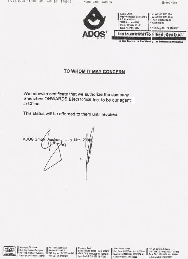 授權(quán)書(shū)-德國(guó)ADOS GmbH